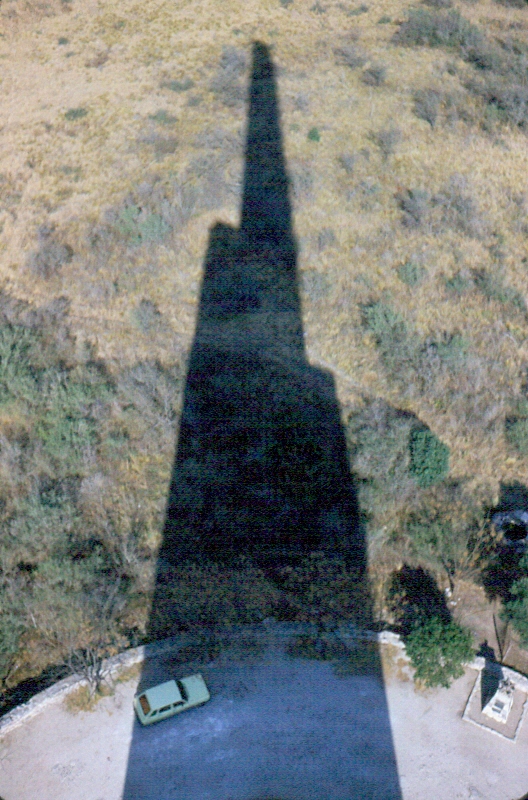 La otra mañana, la mía, era extraña, una premonición de otro raid, el que me esperaba a mí. Me demoré un tiempo como para llegar al lugar cerca del mediodía, la ruta 5 estaba casi vacía. Llegando al kilómetro 17, vi aparecer “un puñal” que brotaba de la tierra dejando su filo a la vista. Son 82 metros de altura, quince más que el obelisco de la ciudad de Buenos Aires, es el monumento funerario más grande construido en nuestro territorio. En realidad, es una semiala vertical, que fascina a todo el que pasa por ahí y obliga a preguntarse por qué. La respuesta es obvia y no nos explica nada: es el amor.